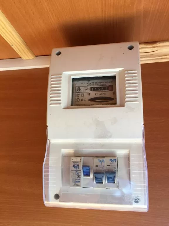 Электрика«стандарт» два светильника в комнате, блок розеток, выключатель, электросчетчик, проводка в коробах ПВХ, электрический конвектор (обогреватель), металлический ввод электропроводки «гусак»